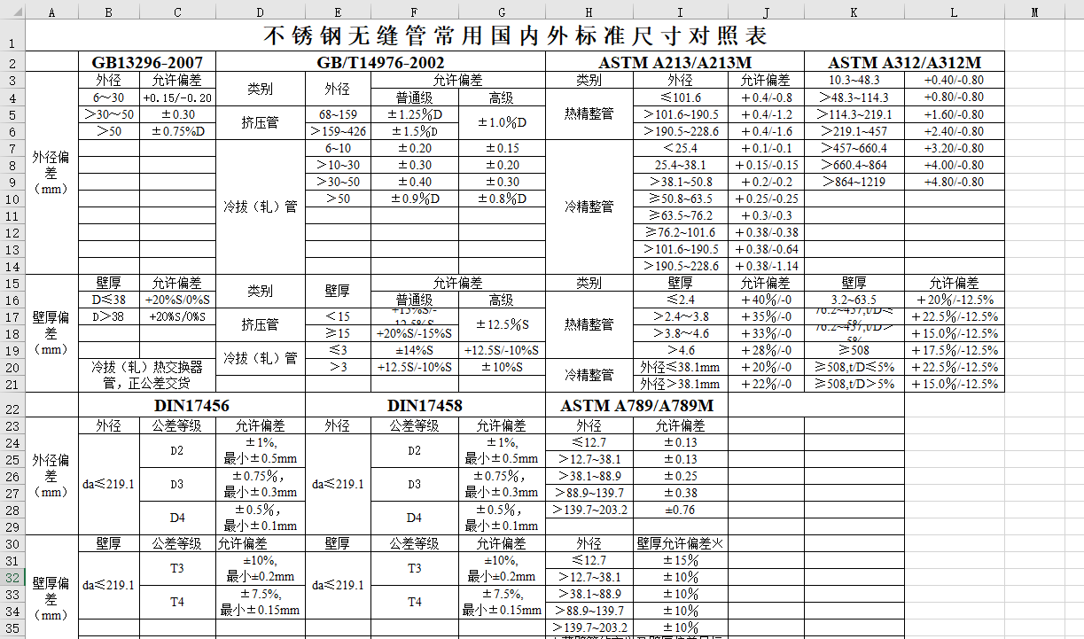 不銹鋼無縫管常用國(guó)內(nèi)外標(biāo)準(zhǔn)尺寸對(duì)照表您了解么?